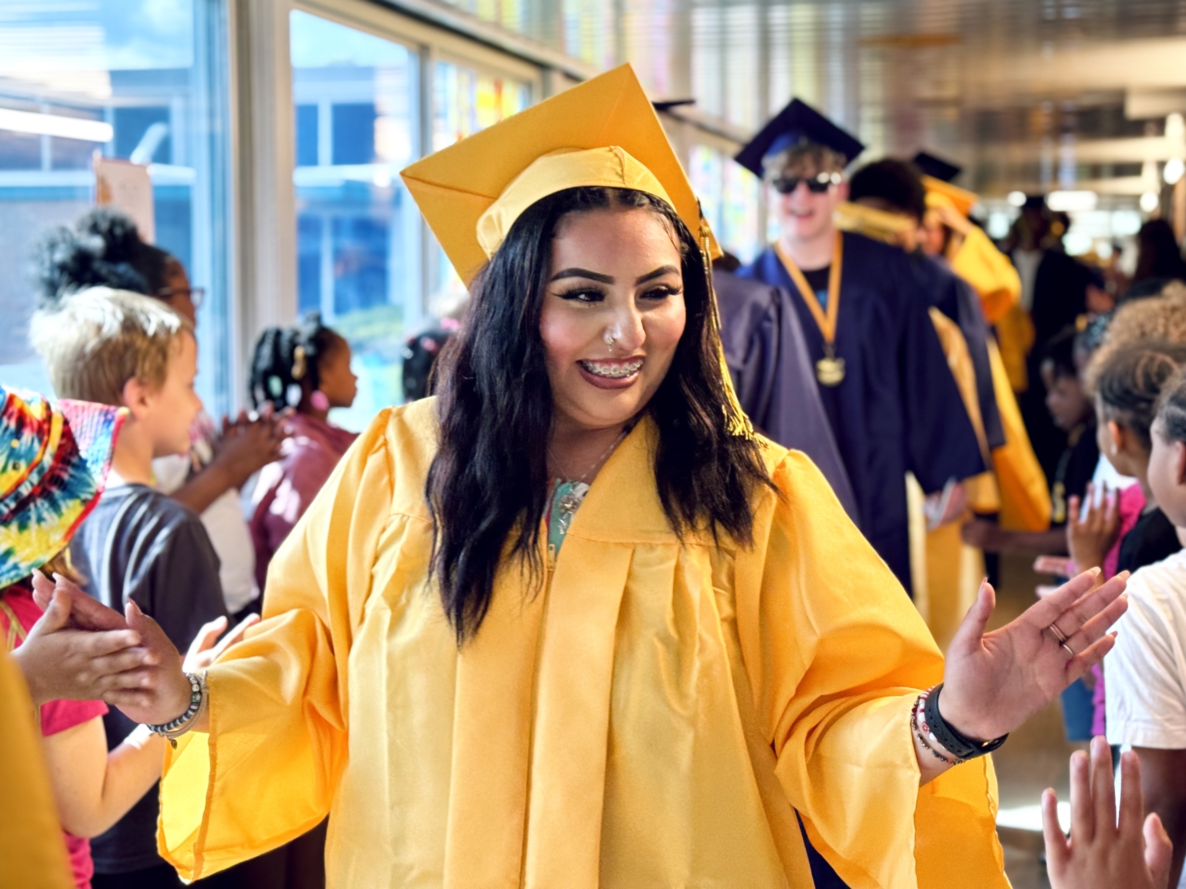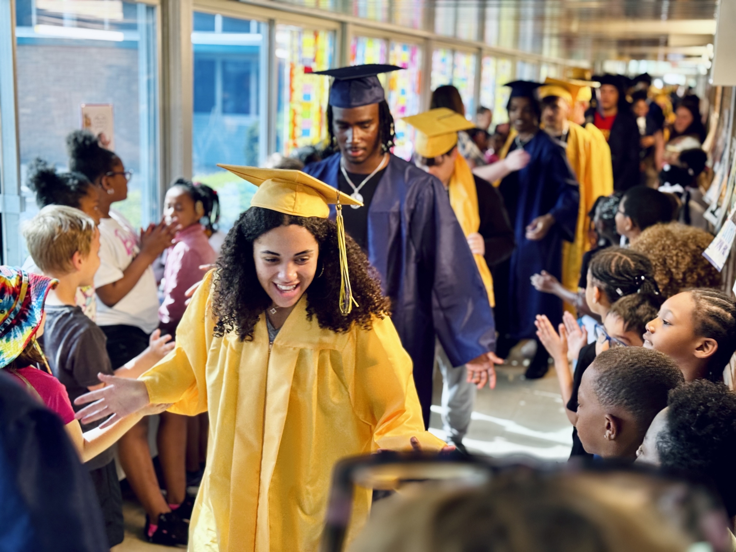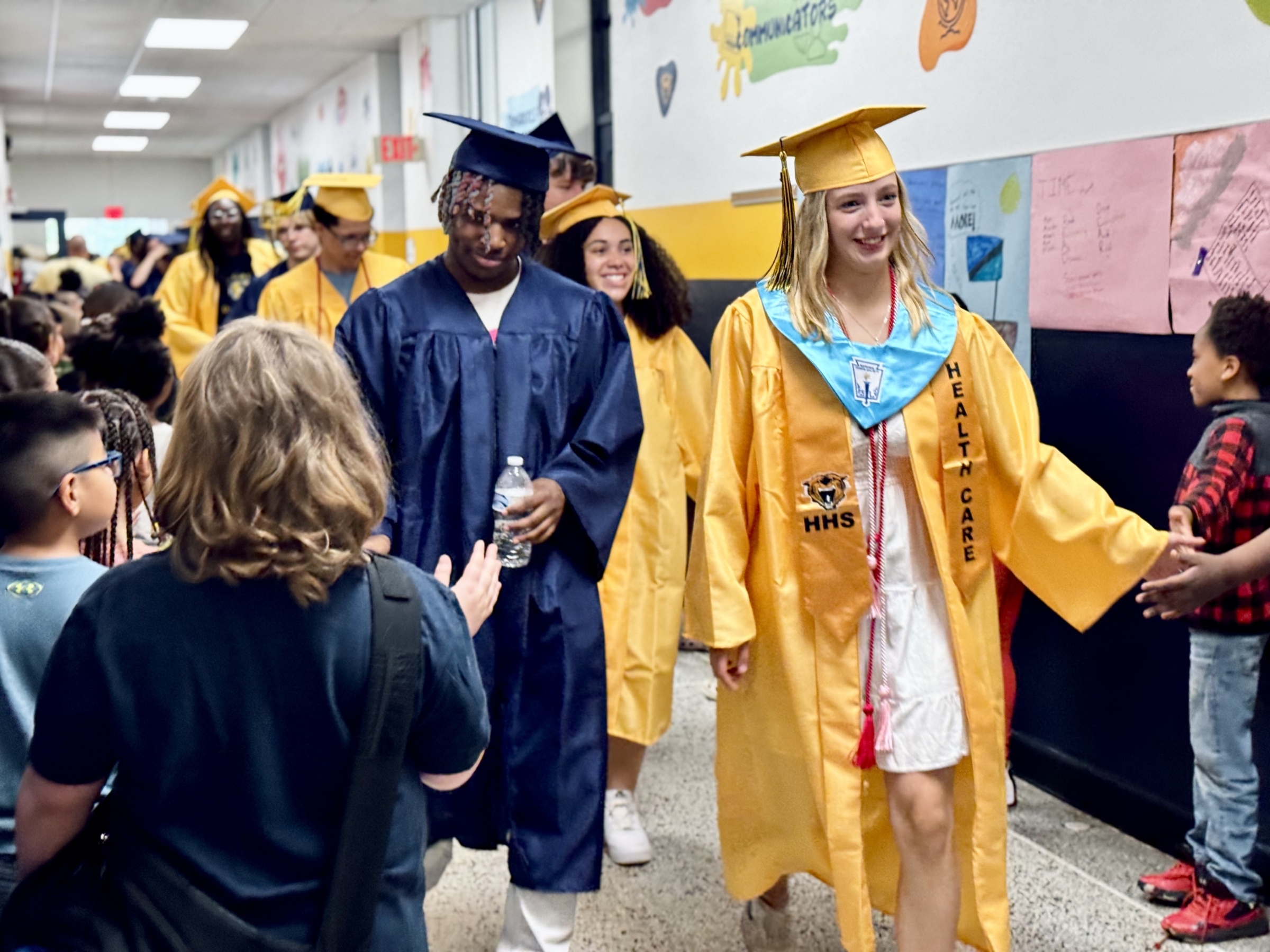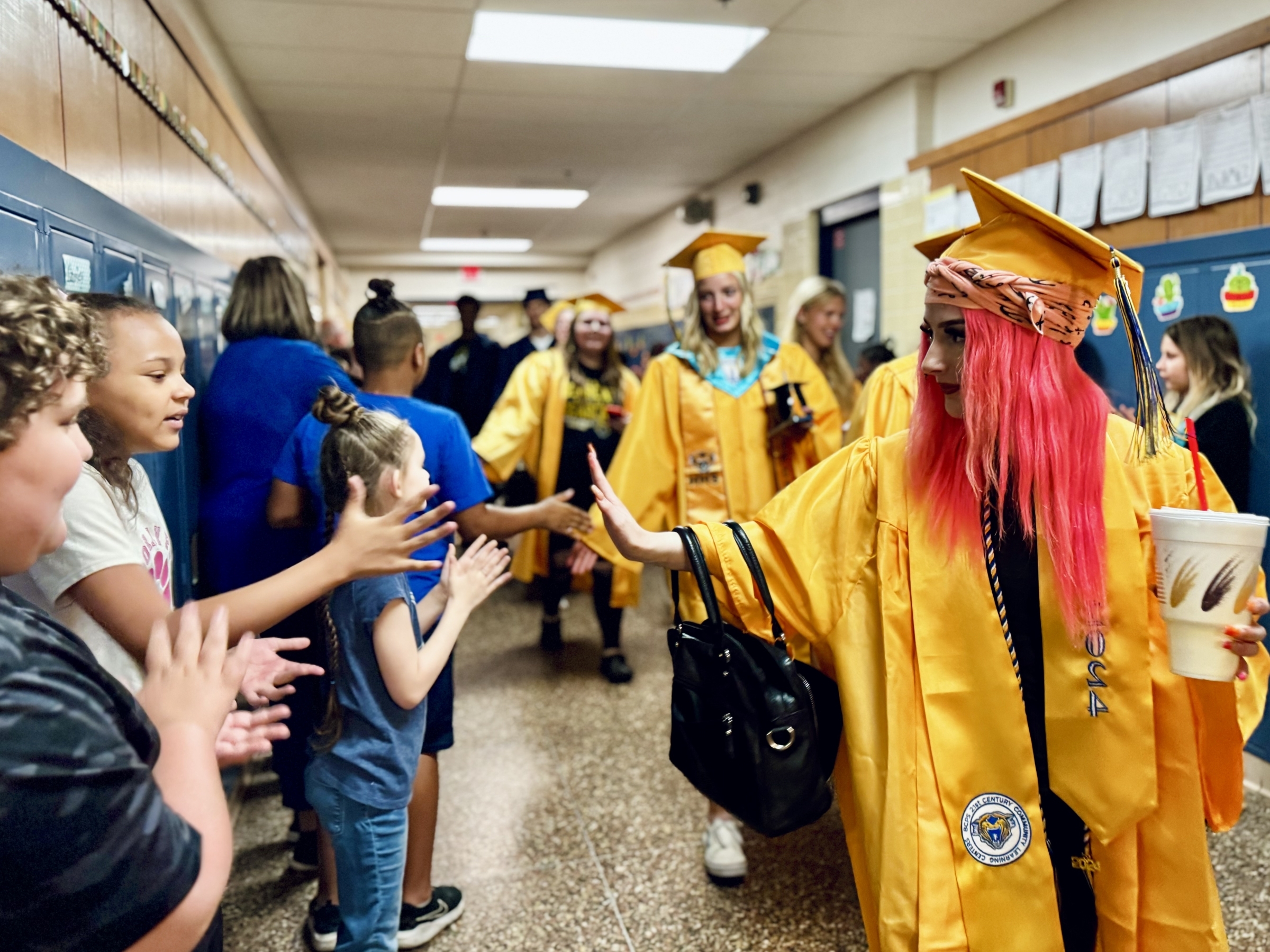 Each year, Battle Creek Central High School's senior class participates in a "Senior Stroll," parading through the hallways of their former elementary schools and middle schools. It's a fun time offering inspiration to our younger Bearcats so they can picture themselves in caps and gowns in a few years as well. Scroll down for a photo gallery from this year's Stroll!