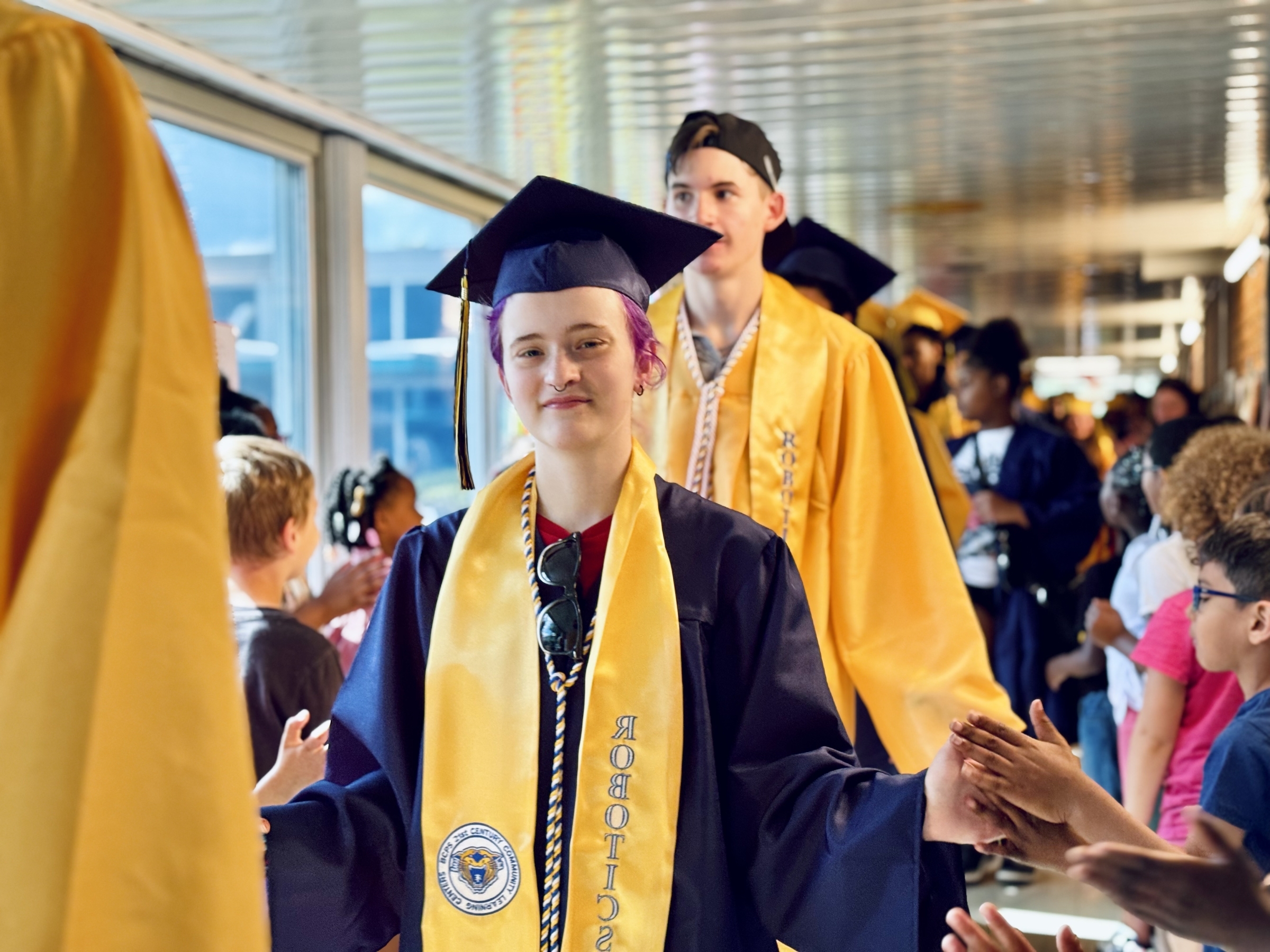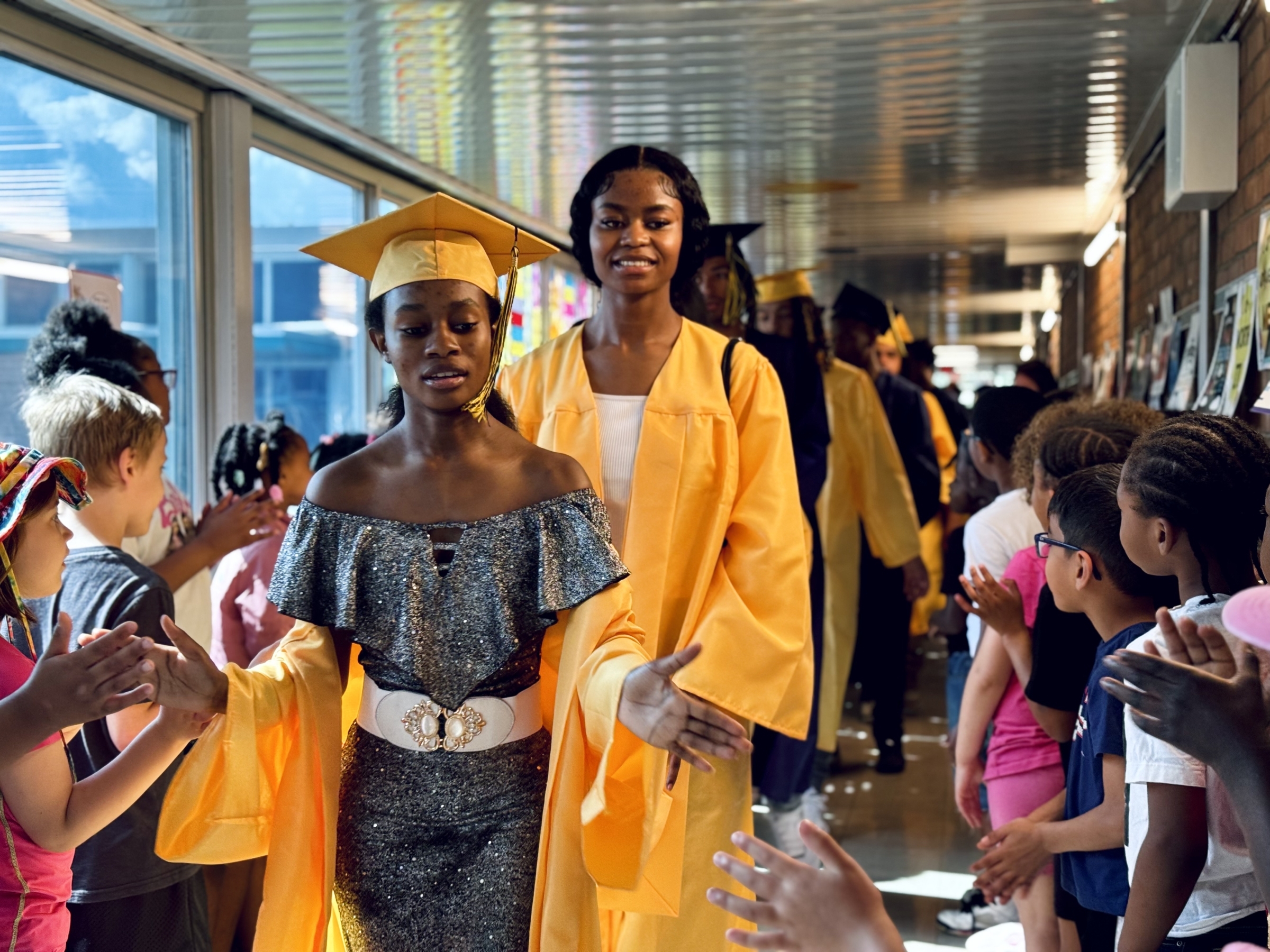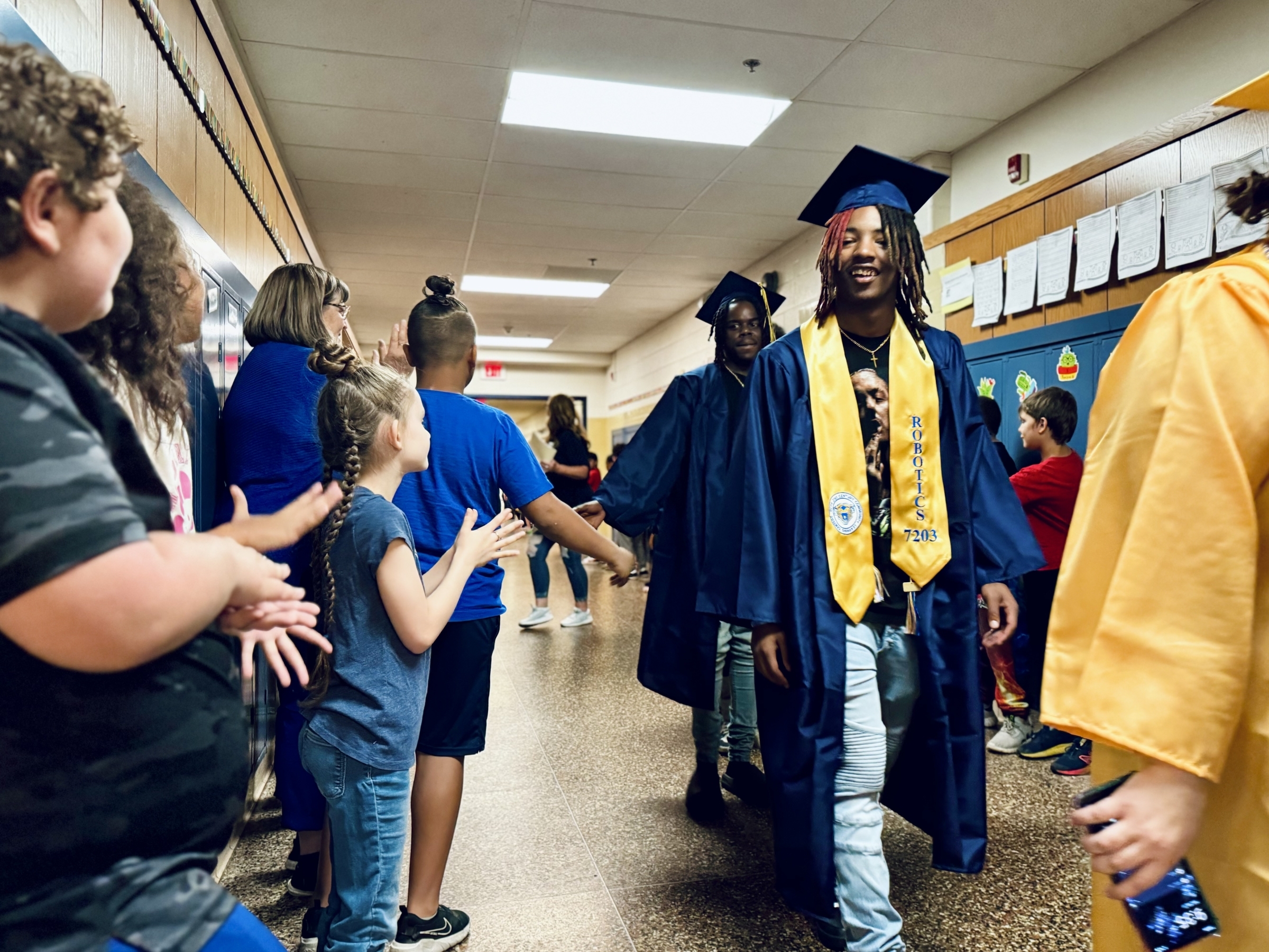 Each year, Battle Creek Central High School's senior class participates in a "Senior Stroll," parading through the hallways of their former elementary schools and middle schools. It's a fun time offering inspiration to our younger Bearcats so they can picture themselves in caps and gowns in a few years as well. Scroll down for a photo gallery from this year's Stroll!