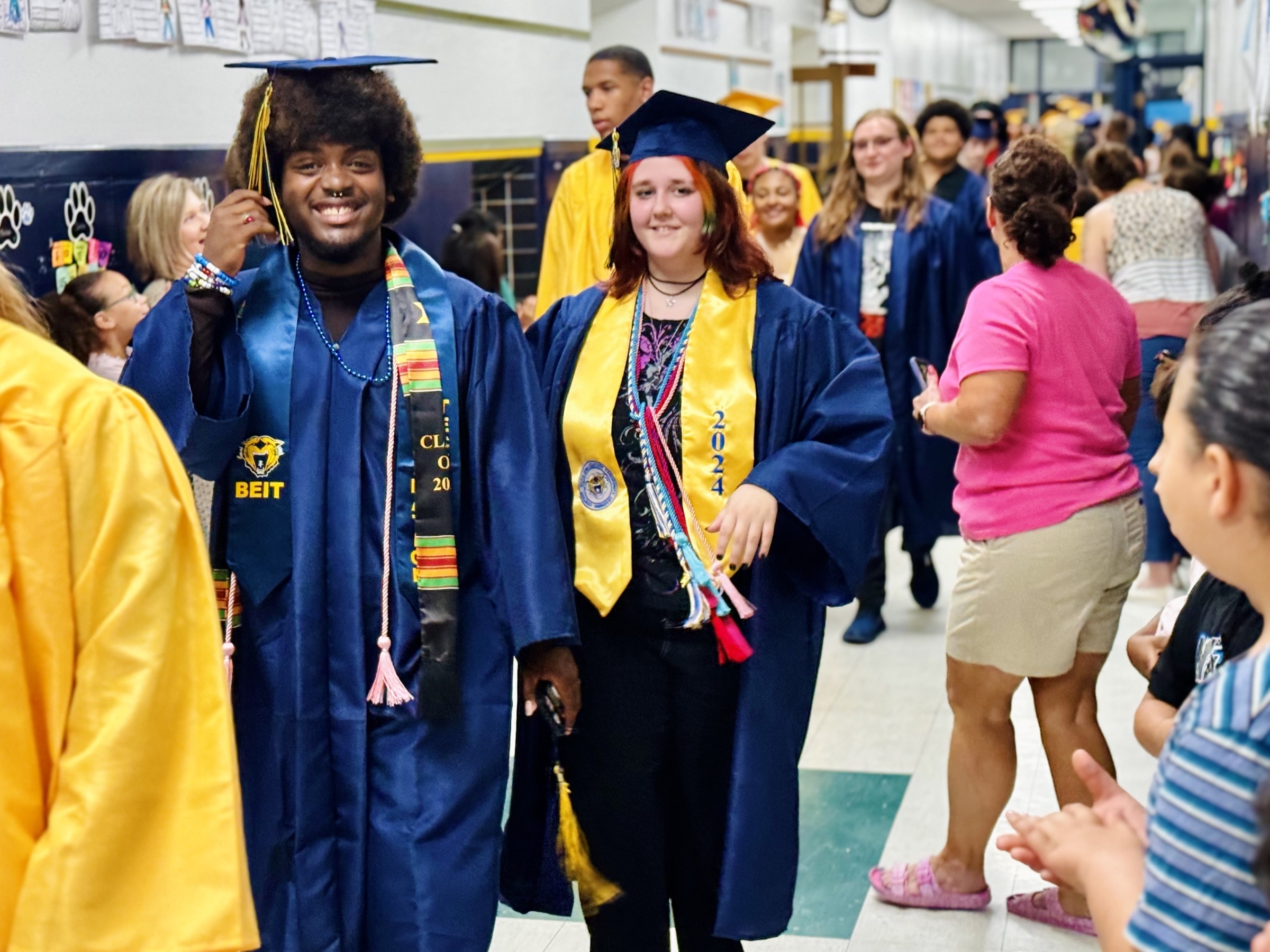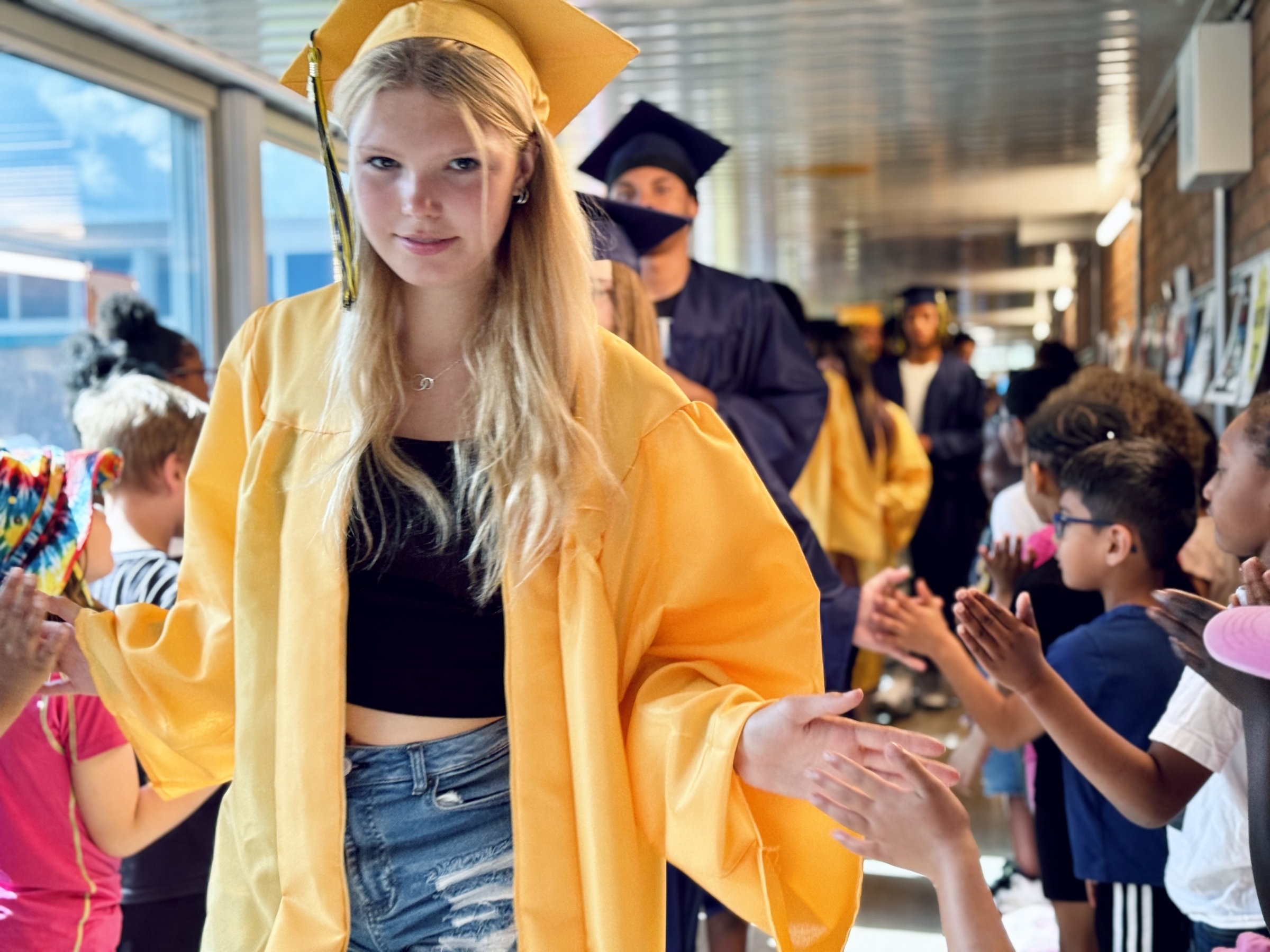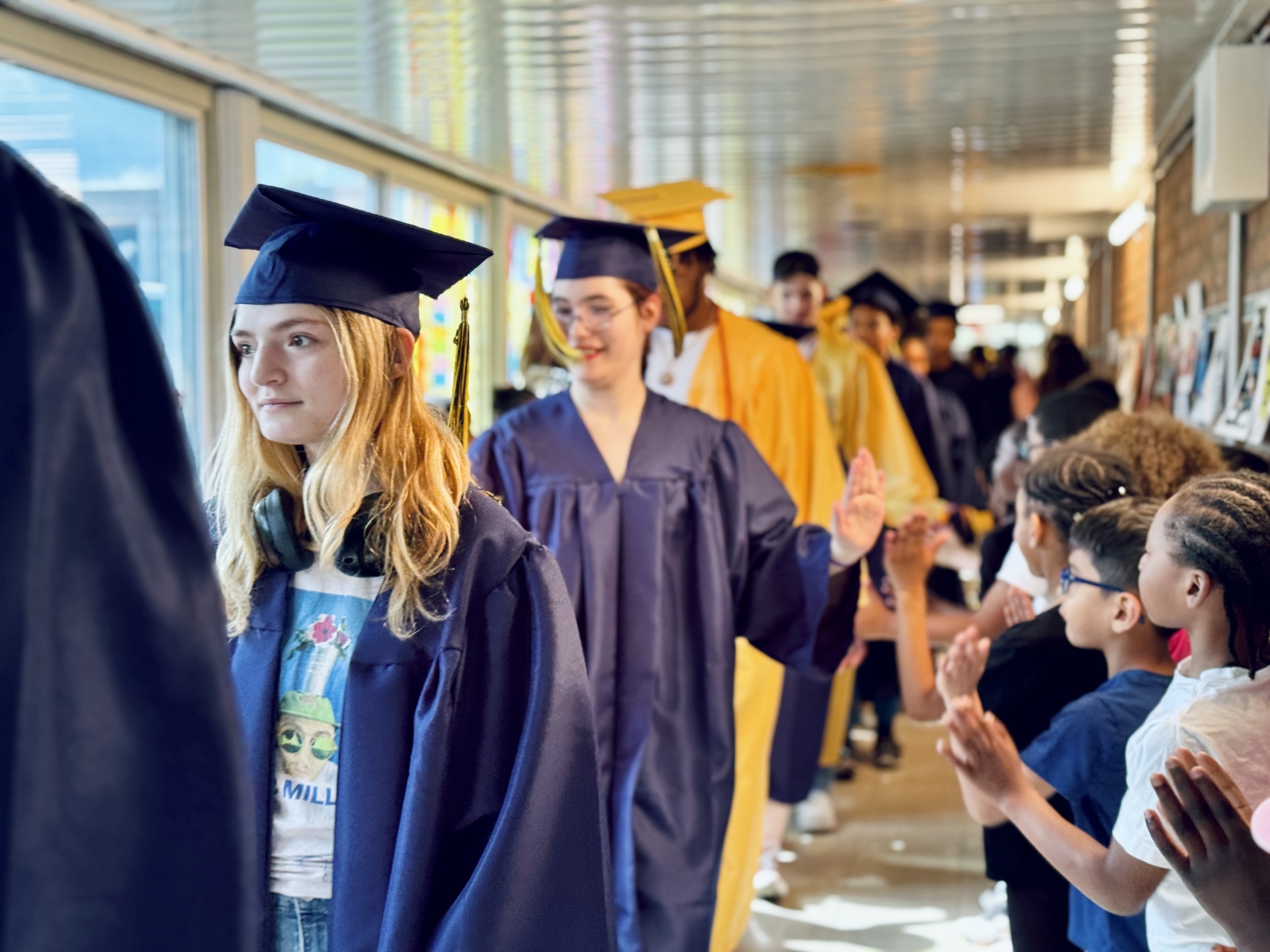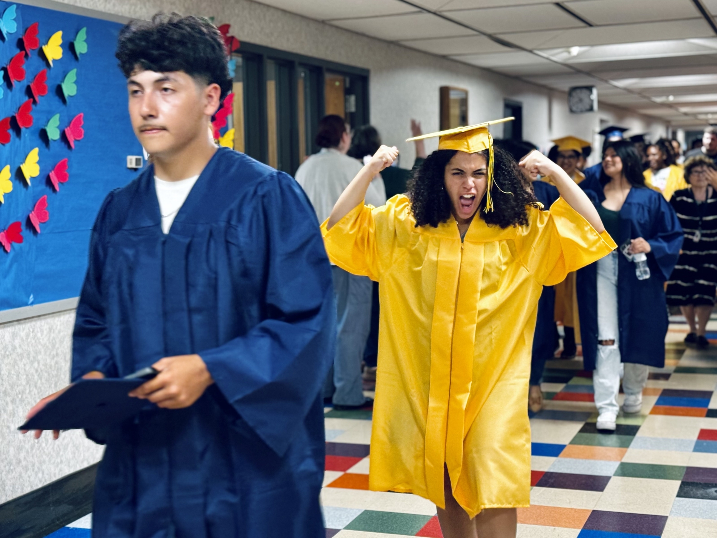 Each year, Battle Creek Central High School's senior class participates in a "Senior Stroll," parading through the hallways of their former elementary schools and middle schools. It's a fun time offering inspiration to our younger Bearcats so they can picture themselves in caps and gowns in a few years as well. Scroll down for a photo gallery from this year's Stroll!