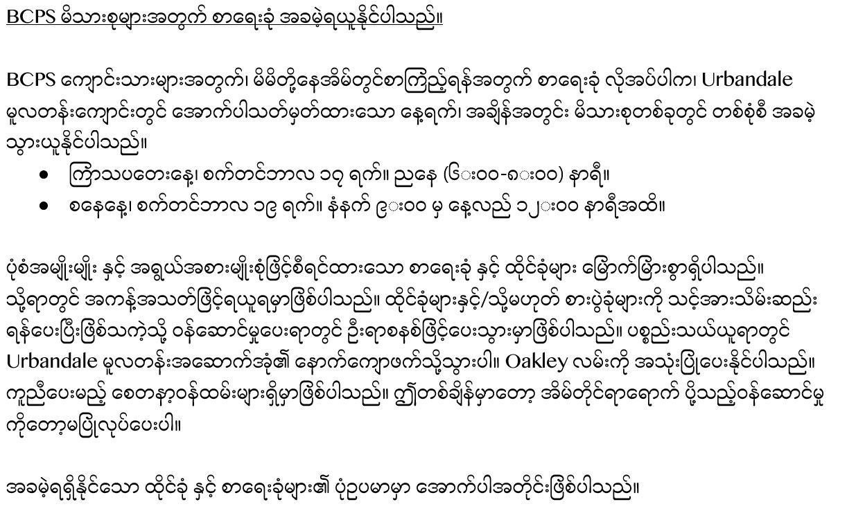 Las familias de BCPS con estudiantes que necesitan un pupitre para apoyar el aprendizaje en casa pueden recoger uno gratis esta semana en la primaria Urbandale durante los siguientes horarios: